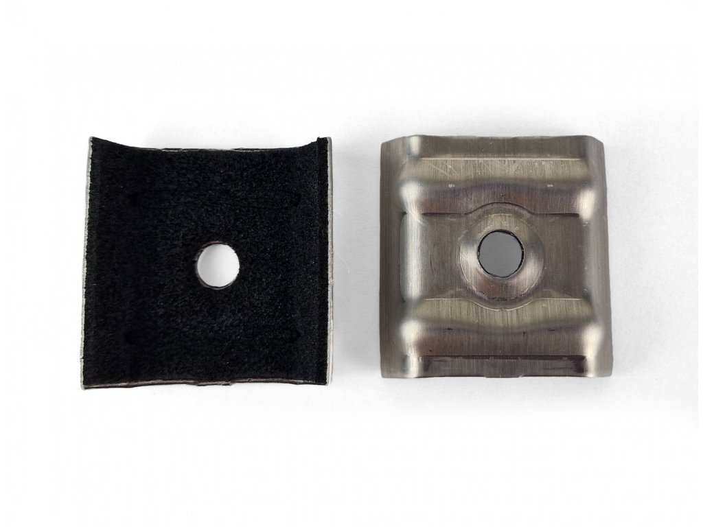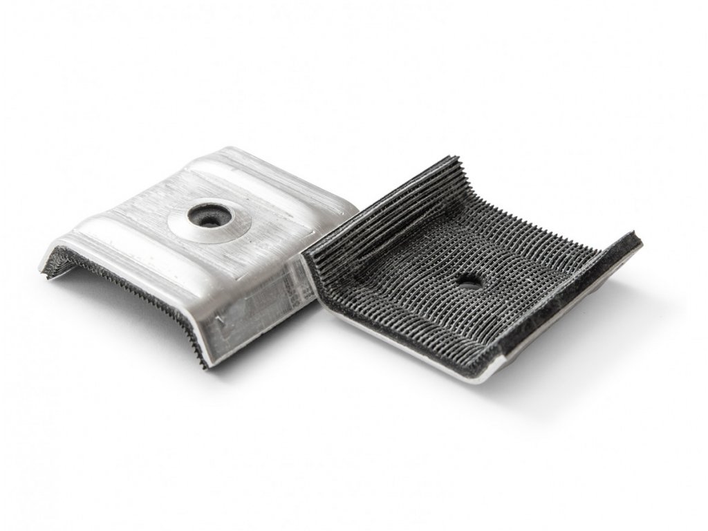 Hliníková trapézová kalota pro přichycení trapézových desek pro profil 76/18. Vhodné i pro návětrná místa a horské oblasti.